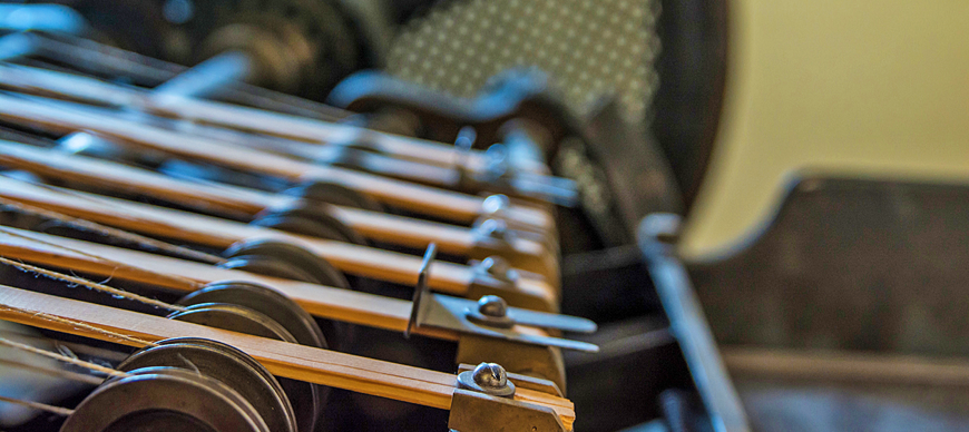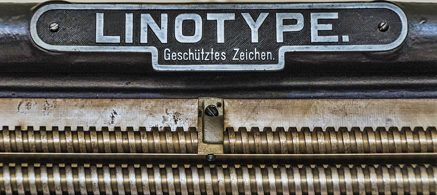 Für den Satz des sogenannten Mengentextes mit Bleiguss steht eine funktionstüchtige Setz- und Zeilengussmaschine „LINOTYPE“ aus den 1930er Jahren zur Verfügung. Eine zweite „LINOTYPE“ ist für die Ausleihe hergerichtet.